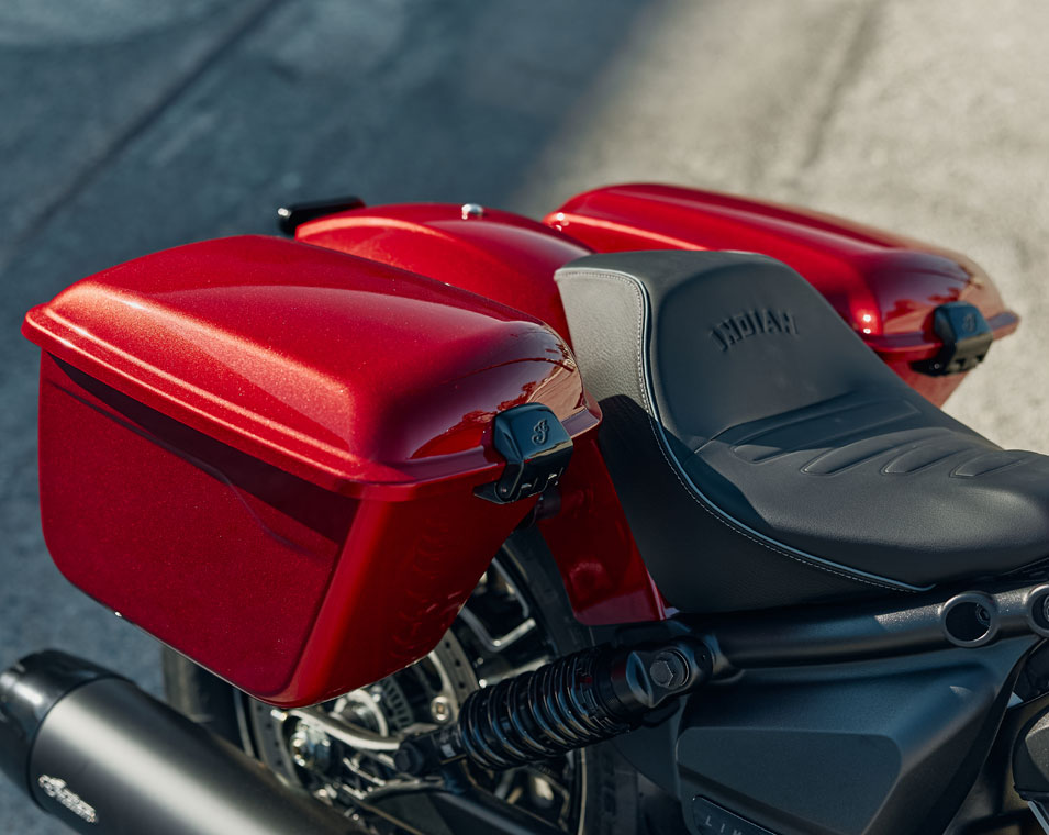 The Sport Scout RT offers evens more capability to the Scout lineup with the locking rigid saddlebags that offer over 37+ litres of combined space, keeping your gear dry and secure. Whether you're commuting, cruising, or on a weekend getaway, the top-down design maximizes cargo capacity.